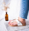 Zueco Saori, una sandalia estilo zueco confeccionada con rafia y forro sintético, que combina a la perfección comodidad y estilo boho. Su base de goma liviana y antideslizante te brinda seguridad en cada paso, ideal para tus días más activos.